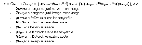 Másrészt függ(ne) a fúvóka keresztmetszetétől, de ez konstans. Harmadrészt befolyásolja a benzin sűrűsége, ami szintén nem változik számottevő mértékben. Továbbá függ még a légtorok ellenállási tényezőjétől és keresztmetszetétől, melyek szintén nem igazán változnak, és végül függ a levegő sűrűségétől. Ez utóbbi viszont jelentős mértékben változik!