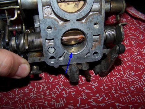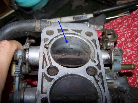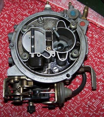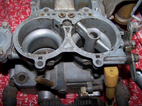 Ezen a képen látható, hogy egy kéttorkú karburátorról van szó, még hozzá egy olyan típusról, aminél a melegítőjáratás alatt nem nyitható a második torok, a szivató mechanizmusa reteszeli azt. Onnan lehet ezt tudni, hogy csak az első torok felett van egy pillangószelep, és mivel a melegítőjáratás alatt nem nyit a 2. torok, így ott nincs szükség szivatóra sem. Ami miatt kitalálták ezt a megoldást az a motor kímélése. Míg a motor nem érte el az üzemi hőfokot, addig nem tesz jót neki a nagy terhelés, így csak abban az időszakban, míg melegszik, csak az első torok látja el a motort keverékkel.