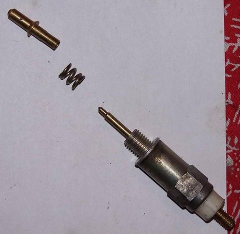 Ez egy kalibrált alkatrész, amin keresztül jut a benzin az úszóházba. Illetve két alkatrész, mivel van a ház, amiben van a kalibrált furat és van a tűszelep, aminek a kúpos vége zárja le szükség szerint a furatot.